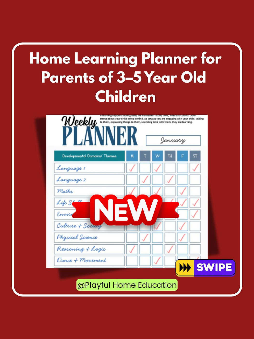 Preschool Learning Themes Based Weekly Planner